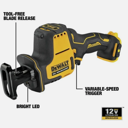 DEWALT's DCS312B XTREME delivers professional-grade reciprocating saw performance in a compact, one-handed design. Powered by 12V MAX Brushless technology, this tool offers extended runtime and durability for cutting through wood, metal, and plastic. The lightweight, ergonomic frame reduces fatigue during overhead and confined-space work. Features tool-only configuration—battery and charger sold separately. This open-box unit provides excellent value for contractors and DIY enthusiasts seeking reliable cutting power without premium pricing.